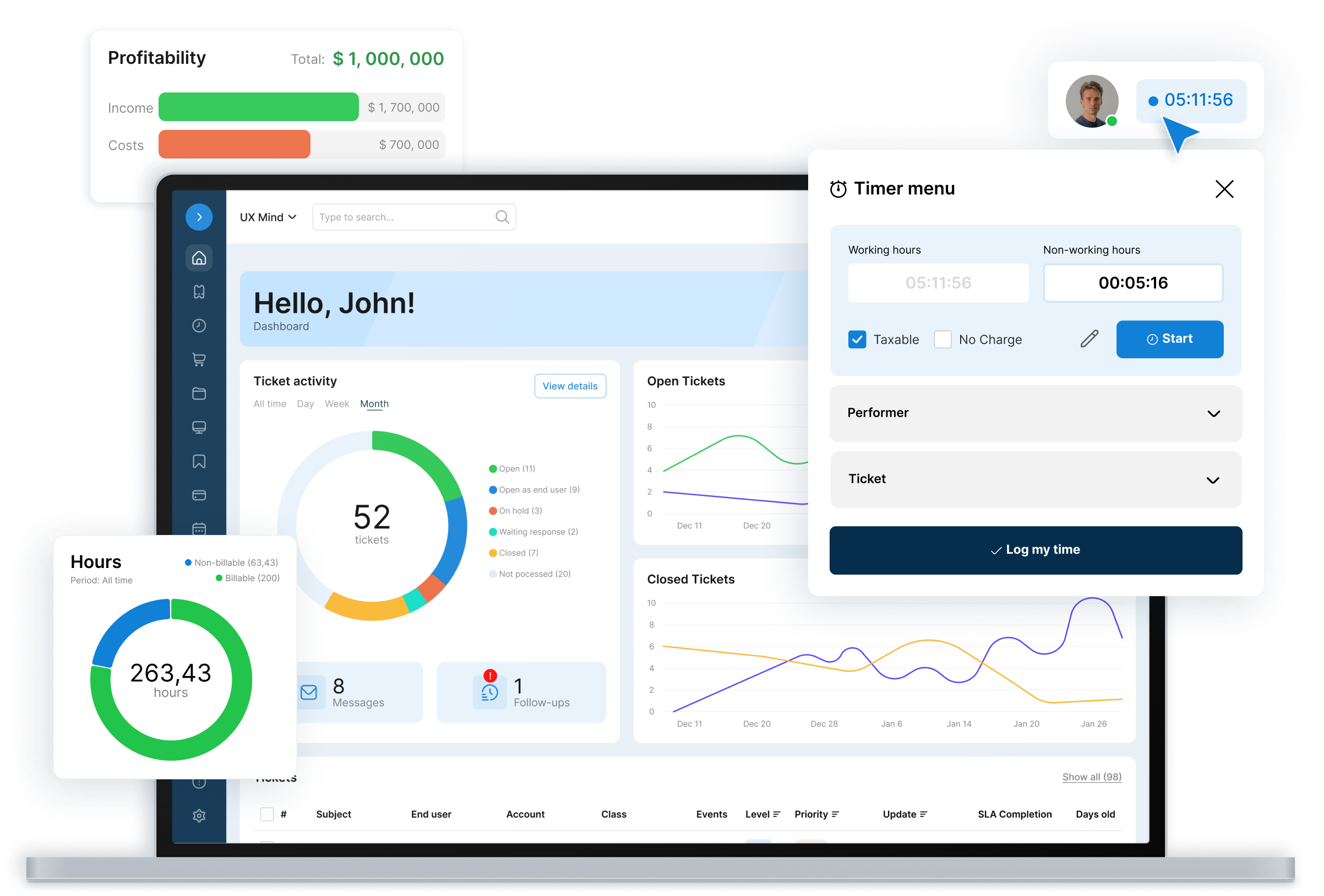 • Manage customer time, service requests and asset data